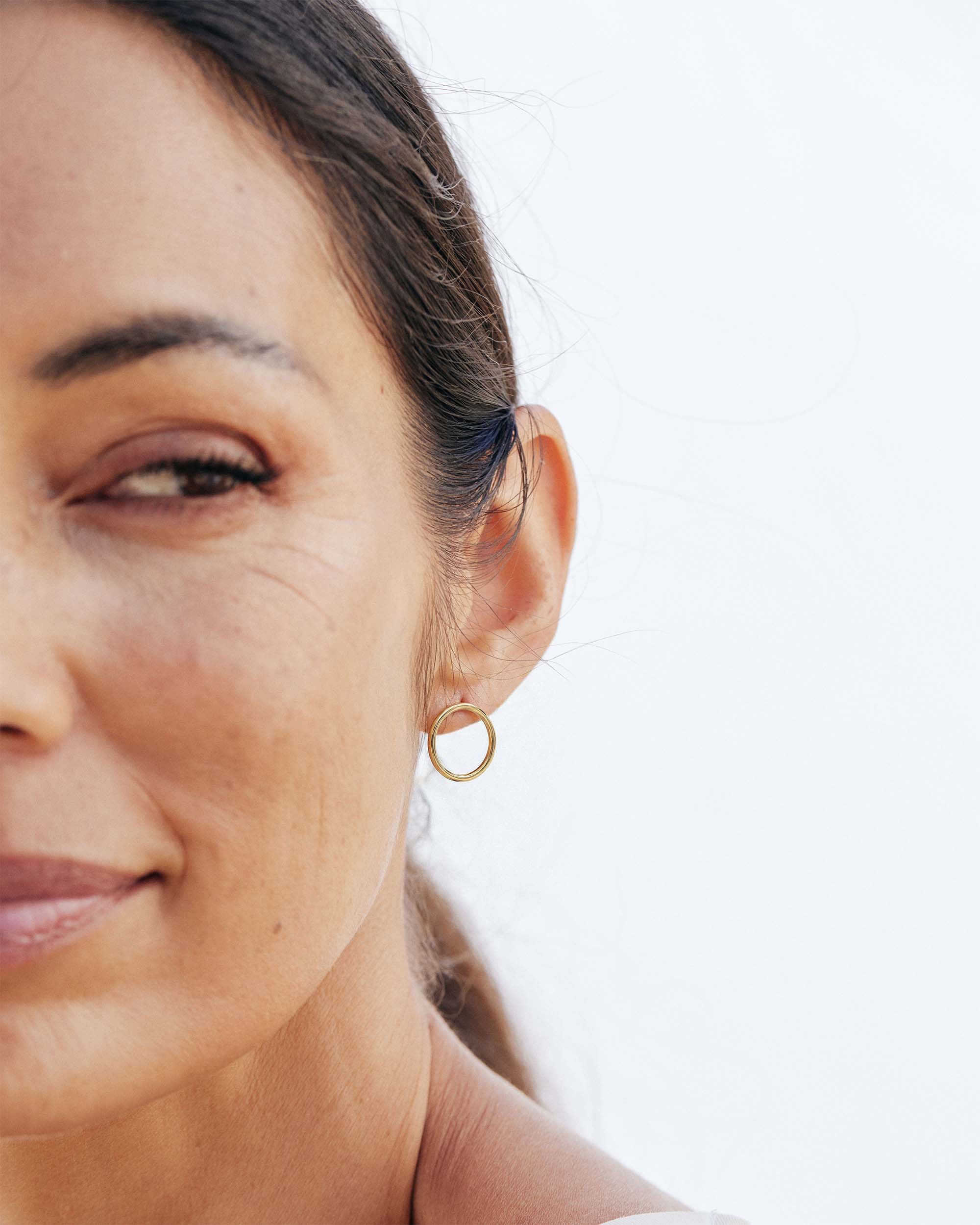 The Signature Circle I earrings present circular frames in polished gold, expressing the collection in its most essential form.