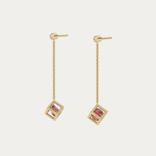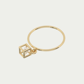 Each piece centres on a stone held within a geometric gold frame, free to move inside its form. Defined by clean lines and quiet motion, the collection balances precision and lightness through a series of rings, necklaces, bracelets, and earrings designed for everyday wear.