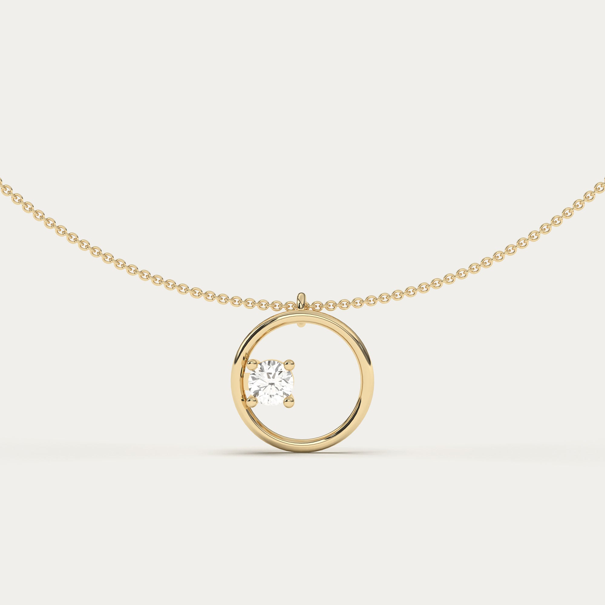 The Signature Circle II necklace features an open circular frame accented by a single diamond of approximately 0.25 carats in a four-claw setting.