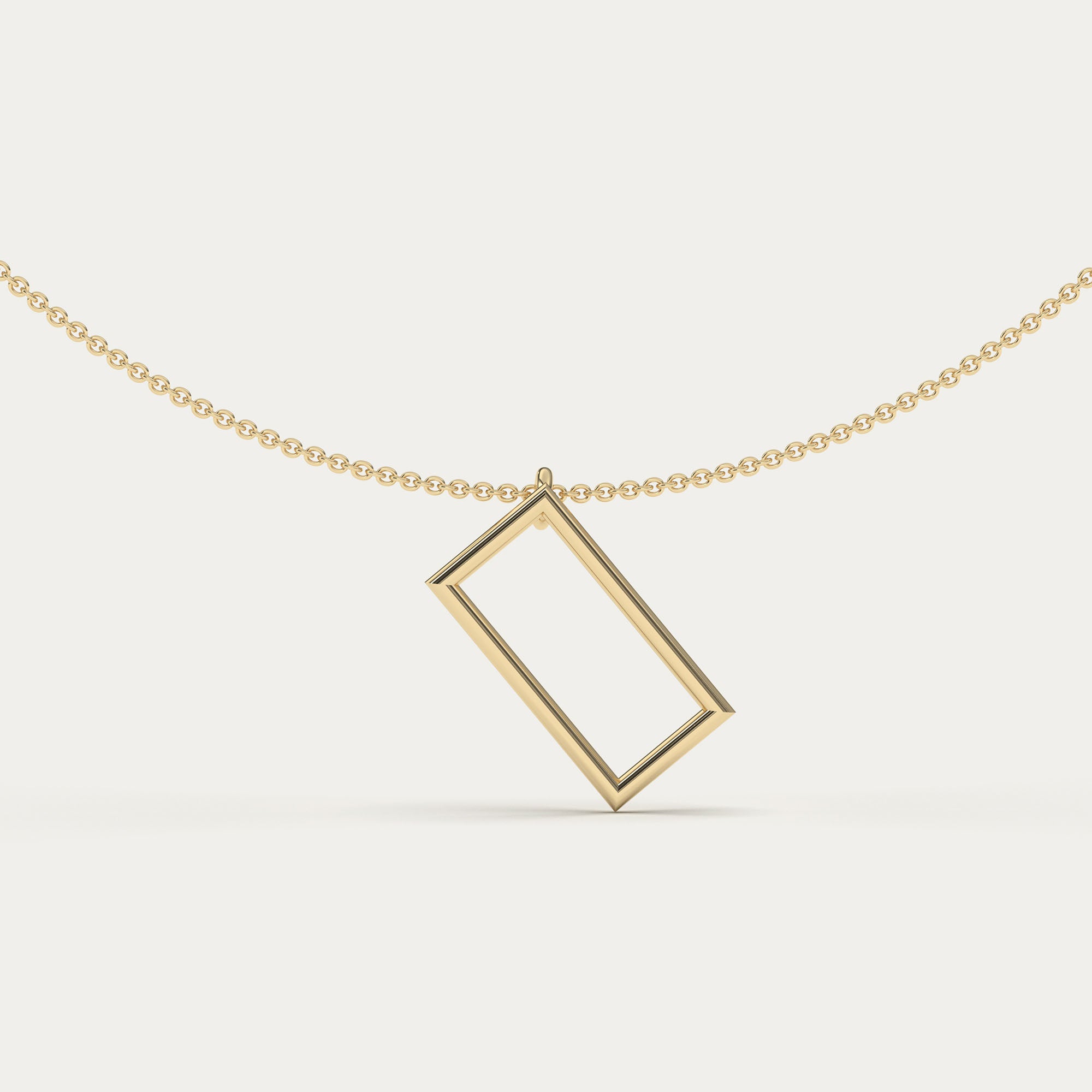 The Signature Rectangle I necklace introduces the collection in its simplest expression, with a rectangular frame set on a fine gold chain.